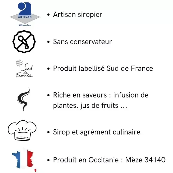 Sirop artisanal Mimosa élaboré en France, sans conservateurs.